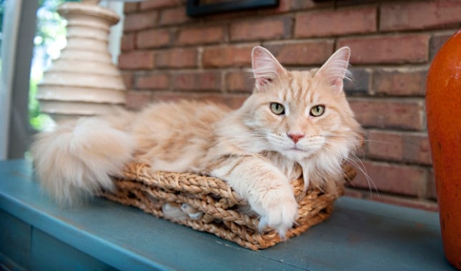 While we typically think of this breed as having a raccoon-like coloring, Maine coons can actually come in many different colors. Smoke, cream, cameo, mackerel, and tortoiseshell colorings are all recognized by the Cat Fanciers’ Association (CFA) as purebred coats.