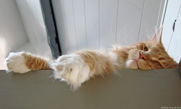 It’s not your typical kitty behavior, but Maine coons can’t seem get enough time in the water. Is the reason largely due to their dense, moisture-repellent coats? We don’t know, but many Maine coon owners have definitely reported this pattern.