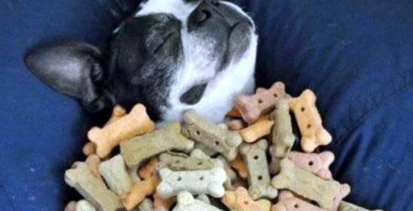 12. Sweet dreams are made of treats. Who are we to disagree? This adorable dog truly has it made. As soon as he wakes up from his nap — which lasts as long as he wants — he can dig into the feast of his life!