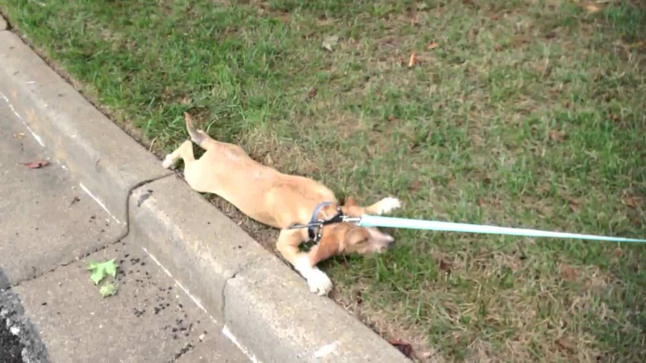2. Marathon runners tend to hit the wall around 20 miles into a race. This puppy, on the other hand, hit the wall just a few yards away from his front door. By the looks of it, she’ll be all set to resume her walk after a quick two-hour nap.