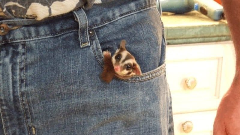 7. Sometimes the littlest pets can be the laziest. Take, for instance, this sugar glider, which is perfectly content to just tag along in its owner’s pocket. Based on its total lack of energy, maybe they should rename it a sugar-free glider.