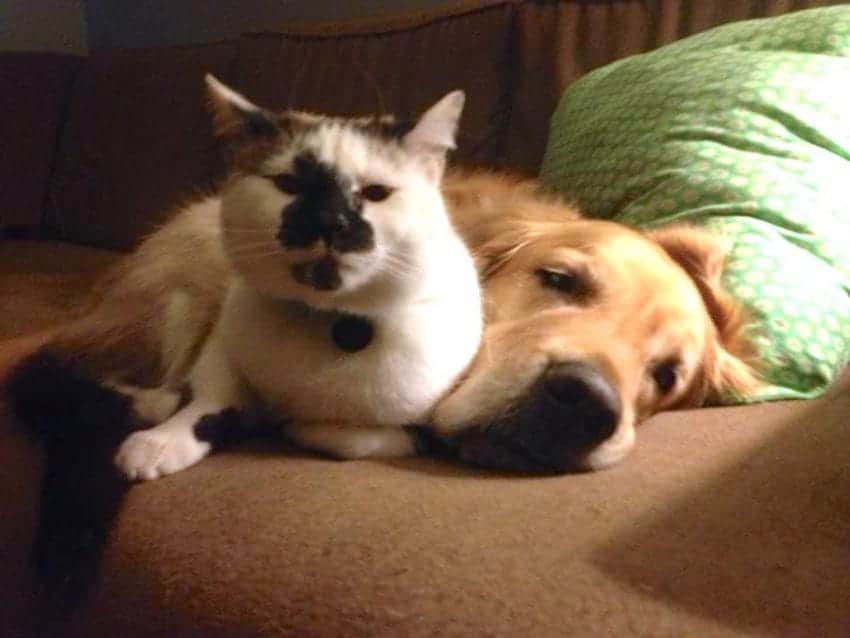 We love how protective this dog is of his cat friend. These two animals have each other’s backs!