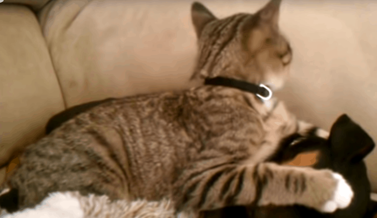 This video finds cute kitty Winston taking care of her recovering puppy Zeke, who just returned from the vet. After playing in the tall grass and winding up with hives, Zeke was rushed to the doctor where they gave him steroid and Benadryl shots.