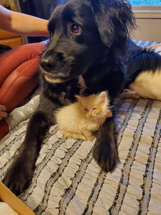 Zep was the dog that Nimbus trusted from the very beginning. He is a gentle giant that has no strangers in his life and he loved the little kitten.