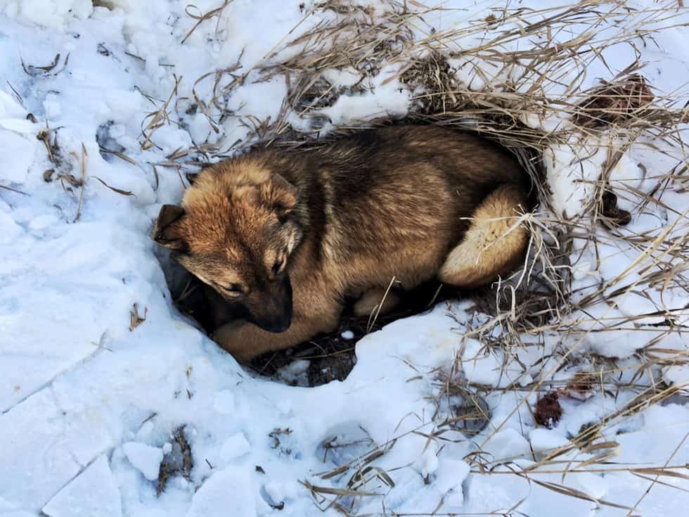 Unfortunately, her body heat melted a hole in the snow where she was curled up. That meant that the longer she laid there, the harder it became for anybody to spot Nutmeg from the road…
