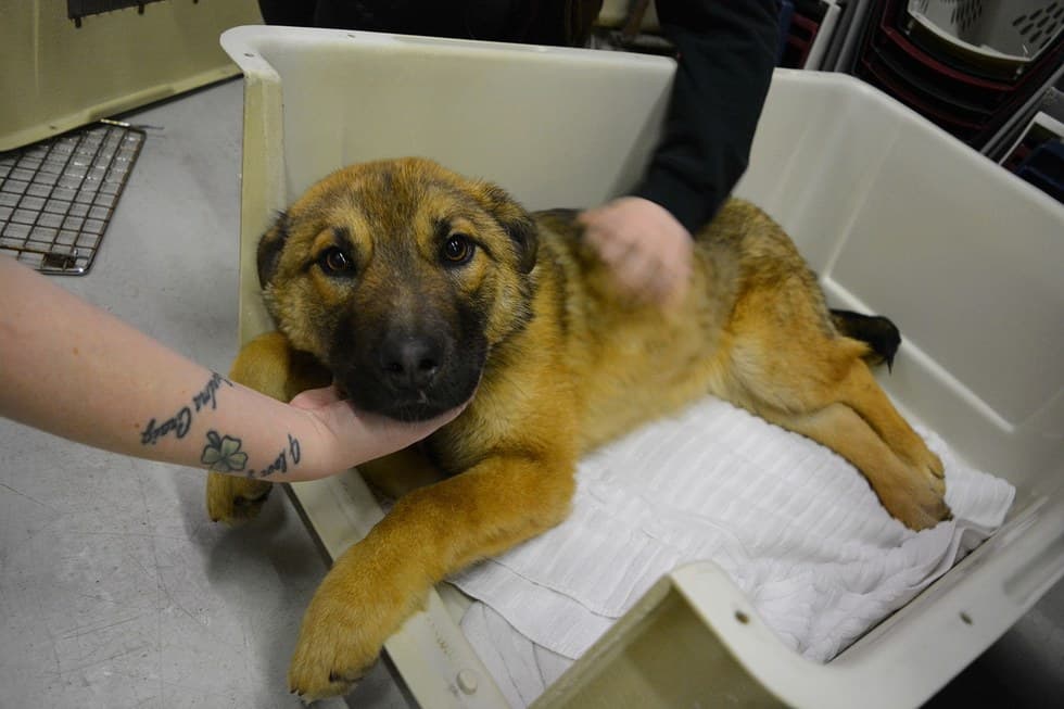 After being hit by a car, 7-month-old pup Nutmeg laid in the snow with a broken pelvis, desperately waiting for someone to rescue her. Unfortunately, her body heat melted a hole in the snow, and with each passing hour she became harder to see from the road.