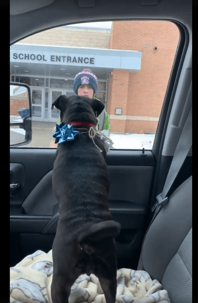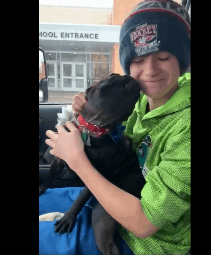 Then, two weeks later, Licata received a message saying a dog that looked like Piper had been picked up and taken to the Genesee County Animal Shelter. She went to the shelter and, sure enough, it was Piper! Carter was out of town with his father at the time, so Licata decided to surprise him when she next picked him up at school.