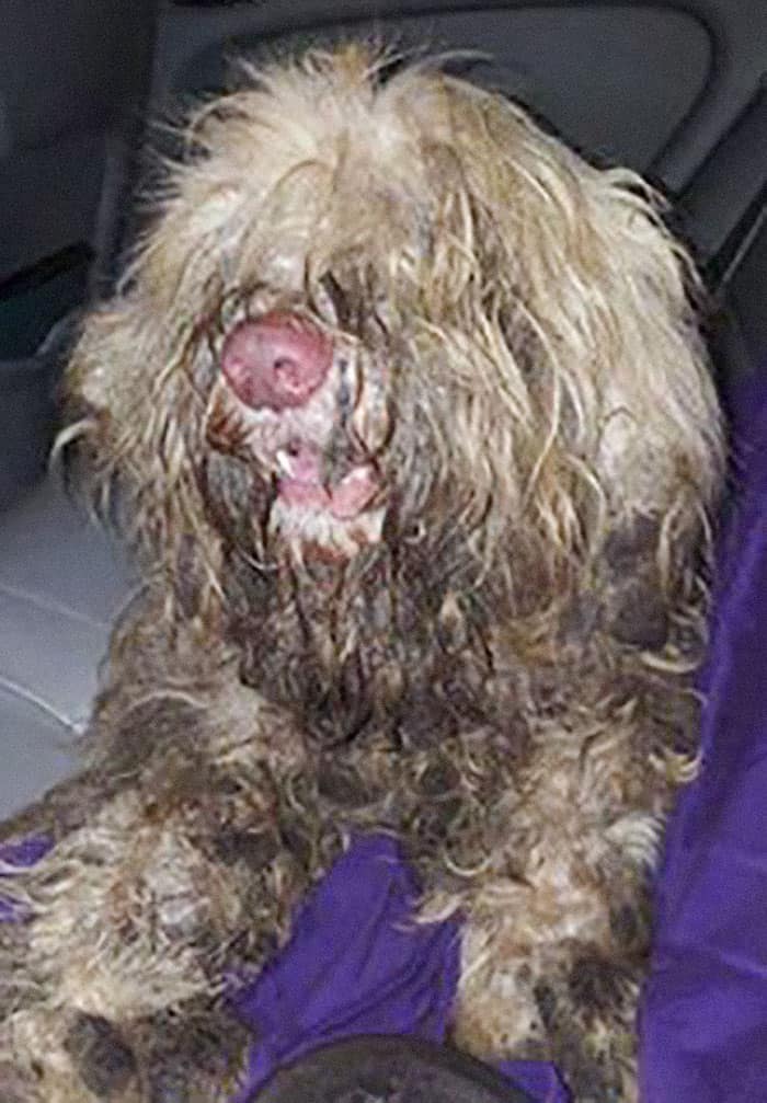 This stray dog was found on the side of a road in Oviedo, Florida, so matted and exhausted that he couldn’t walk