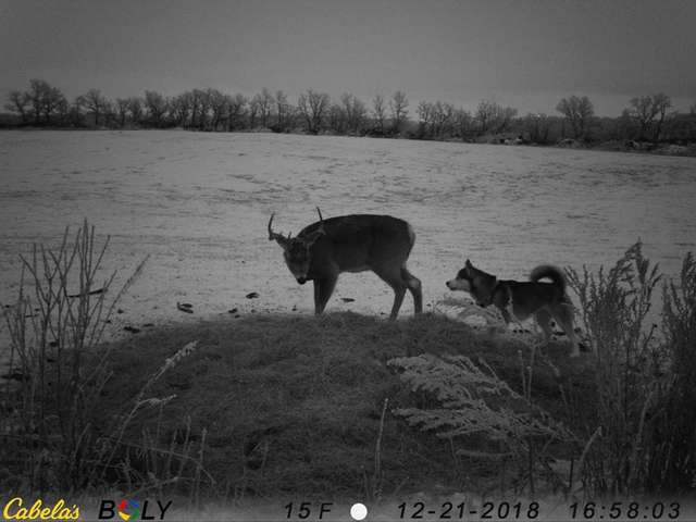 But it wasn’t until a couple of days later that Rachel thought to check with her neighbor who has a trail camera set up. And sure enough, Koda was spotted on the cam — with a new friend.