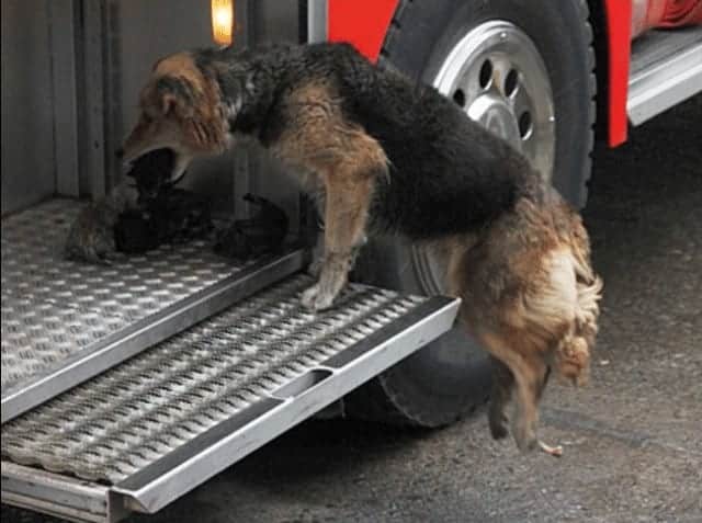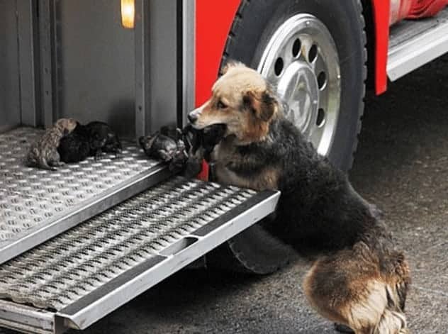 The family’s dog, Amanda, had given birth to puppies just 10 days before. In the midst of the blaze, she had to make sure all of her puppies were safe.