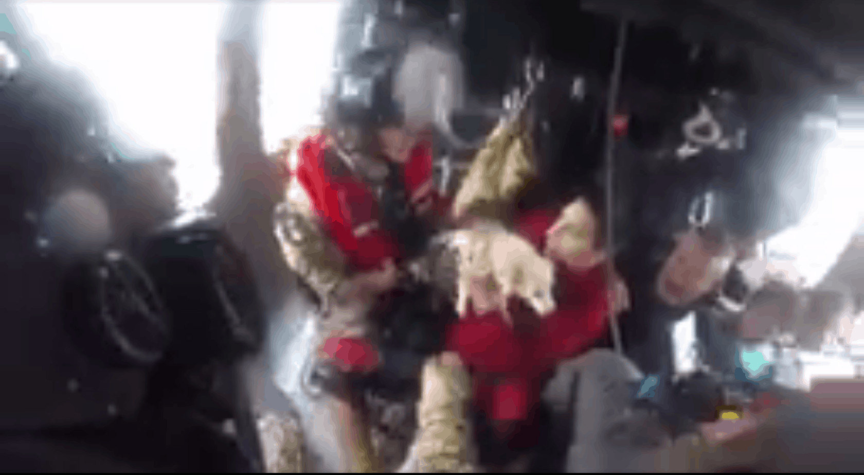 As they pulled one man in a red shirt into the helicopter, people noticed that he wasn’t alone in the basket. Click below to see what the man was holding tightly in his arms.