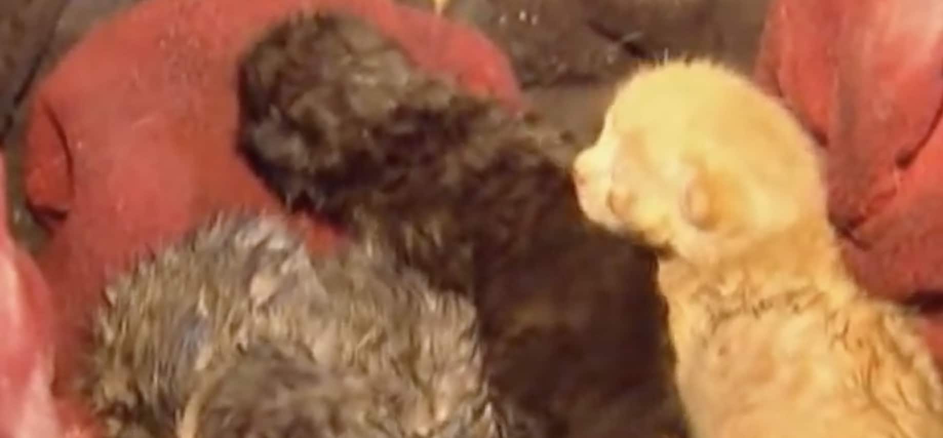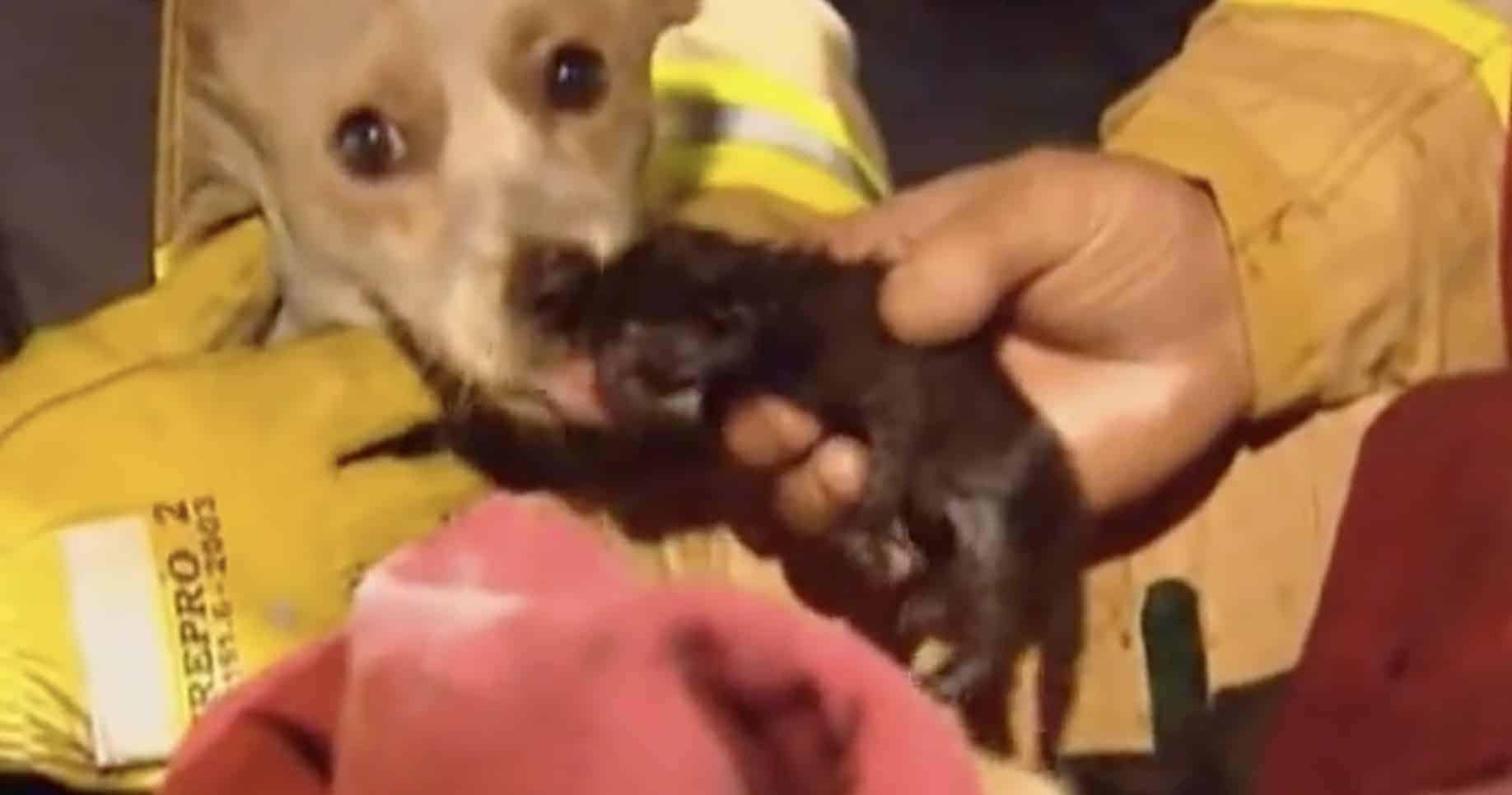 When they picked up the small pup, they noticed that the newborn kittens were underneath him. The little dog was losing oxygen before the firefighters got to him but he managed to keep the kittens safe by using his body as a shelter.