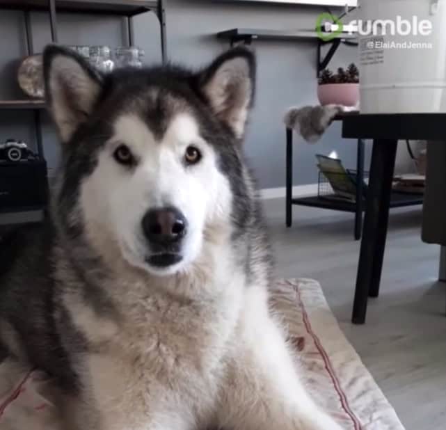 And the “woo” is Jenna the Malamute’s cue to come in! The smart pooch knows to sing then and only then, and it’s pretty remarkable. And look at that tail wagging! Jenna puts her all into this and loves every second of it.