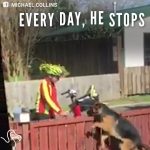 Every day, whether or not Michael has mail, this particular mailman stops to see Kyza. Rain or shine, Steve goes out of his way to stop by Michael’s house, hop off his bike, and give the dog a friendly hug and a pat. Kyza, as you’re about to see, absolutely savors these precious moments with Steve and proves he’s not as scary as the folks in his neighborhood may think.