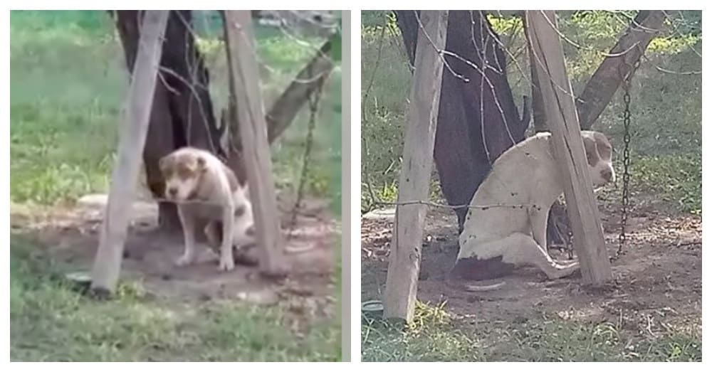 Animal rescuers from Dallas DogRRR were heartbroken when they saw a paralyzed dog chained to a tree in south Texas. The sweet girl pulled herself along with her front feet and dragged her backend. The chain was wrapped tightly around the tree making it impossible for her to reach the food or water bowls. Rescuers immediately contacted the local police and animal control for help.