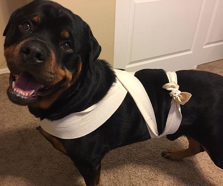 Then, wrap it around your dog at their chest and their withers. If you are unfamiliar with the term “withers”, that just means at the base of the dog’s neck. It might seem like something intimidating to try, but the truth is that it’s a breeze!