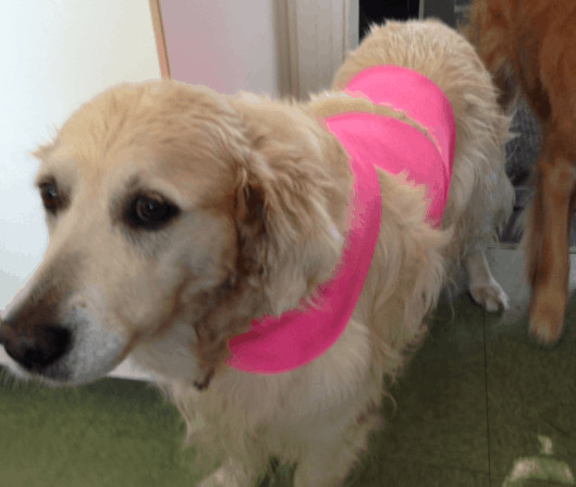This do-it-yourself therapeutic half-wrap is making its rounds on social media. It helps dogs chill out during a time of high stress or anxiety. To make it, all you need is a piece of fabric the length and width of a scarf.
