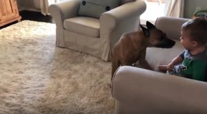 The adorable child in the video is 18 months old, Andonis Antonakis with the family’s 3-year-old dog named Brooklyn. What makes this even more special is that Brooklyn is afraid of most adults, but she finds pleasure in being around children.