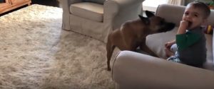 Have you ever had a case of the giggles? I mean the kind where you absolutely can’t stop? Maybe it was even accompanied by tears running down your face. Most people could probably recall at least one episode in their life where they had a case of the giggles. But for most, it probably involved a shared laugh with another person. Well, this case of the giggles has to do with a dog and a cute child.