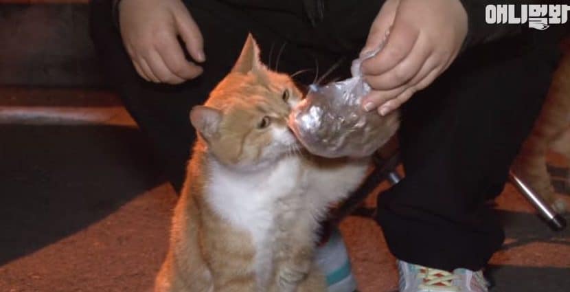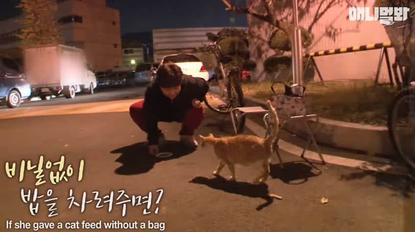 In addition to wondering why Dongsuk preferred that her meals were served in this unconventional way, there was also the question of where exactly the cat was taking the food to once she received it. Most of the other cats simply ate in front of the volunteers…