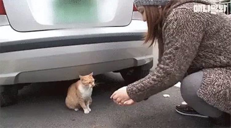 To get to the bottom of this, the volunteer and her friends decided to follow Dongsuk, but they knew this would be very tricky. While the cat was very sweet, she was still feral, and chances are she wouldn’t take well to being followed. The last thing they wanted to do was scare her away from her primary source of food.
