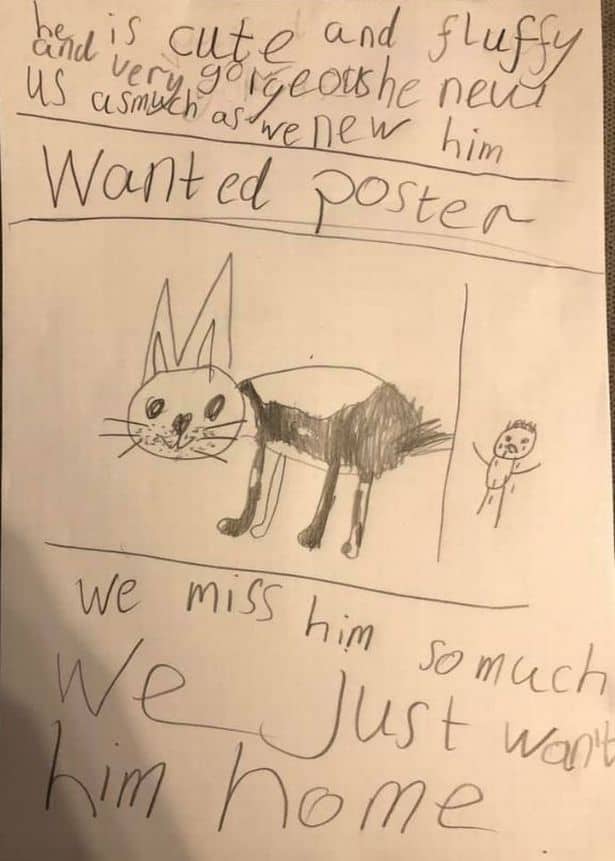 The heart-wrenching poster reads, “He is cute and fluffy and is very gorgeous. He knew us as much as we knew him. We miss him so much, we just want him home.”