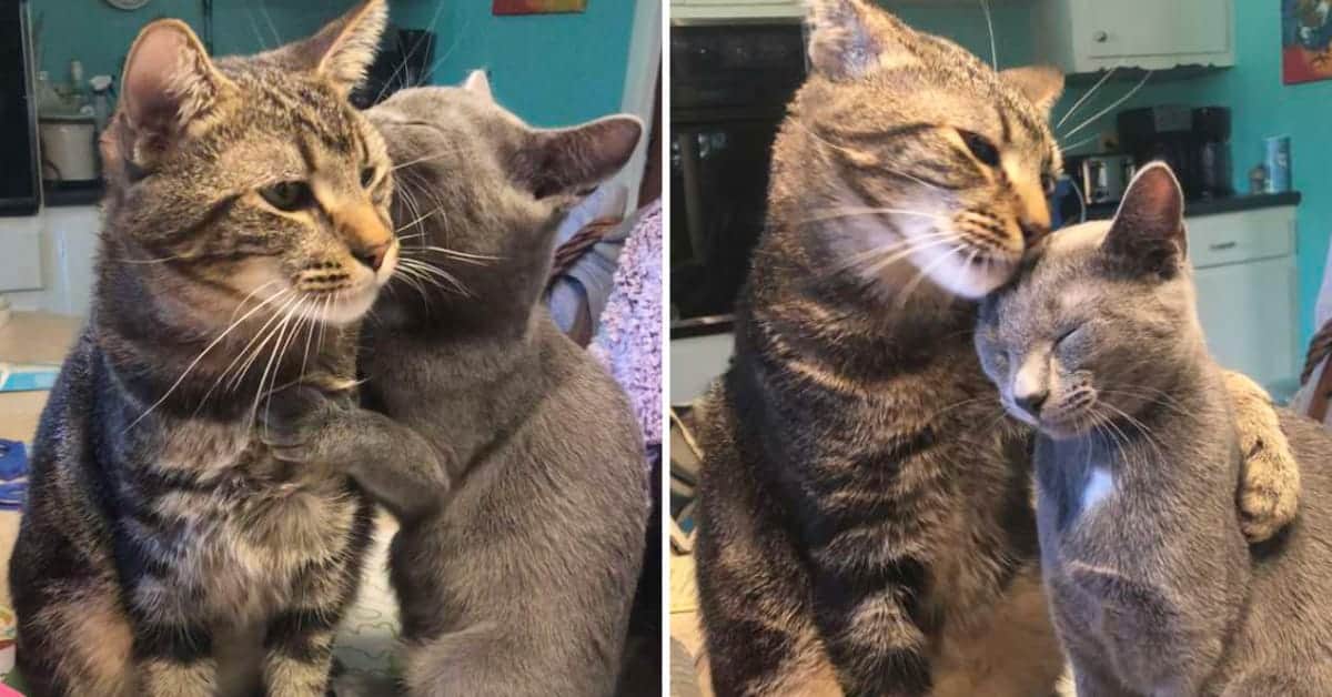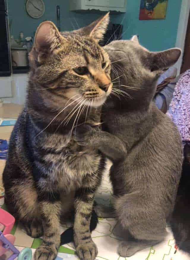 Thankfully, Hannah managed to bring Buddy out of his shell. The love they have for other each other is truly special to see. We don’t know if they see each other as cat siblings or if Hannah is Buddy’s cat girlfriend, but either way, they’re adorable!