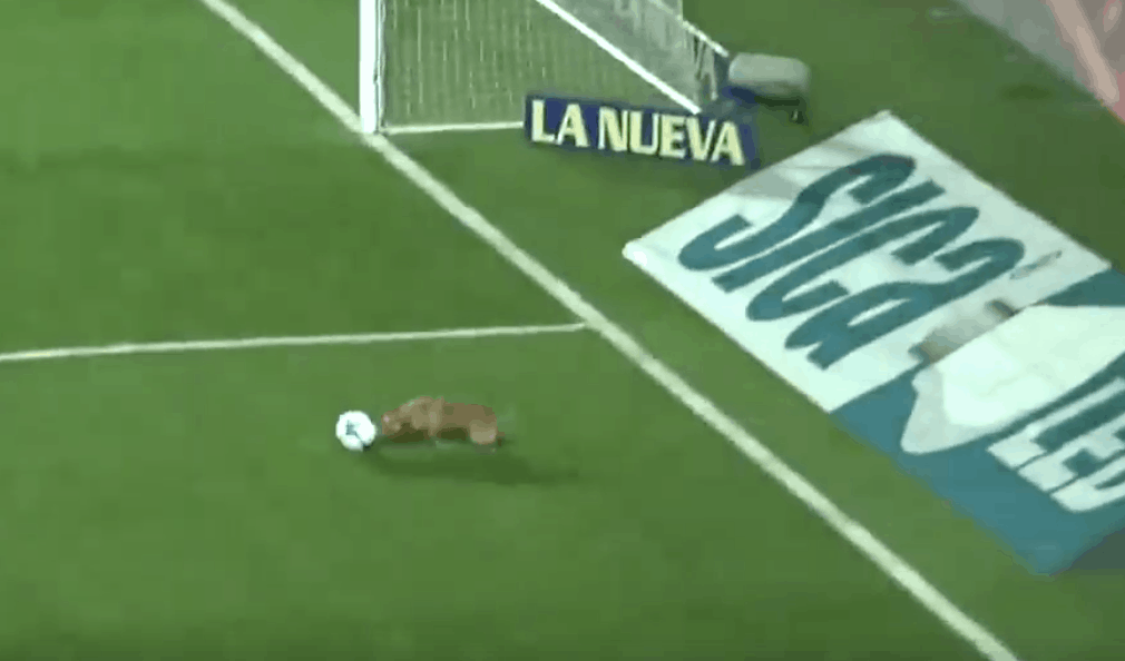 A soccer match between San Lorenzo and Arsenal de Sarandí in Argentina was brought to a halt after about 30 minutes when a random dog ran onto the field and decided to play fetch.