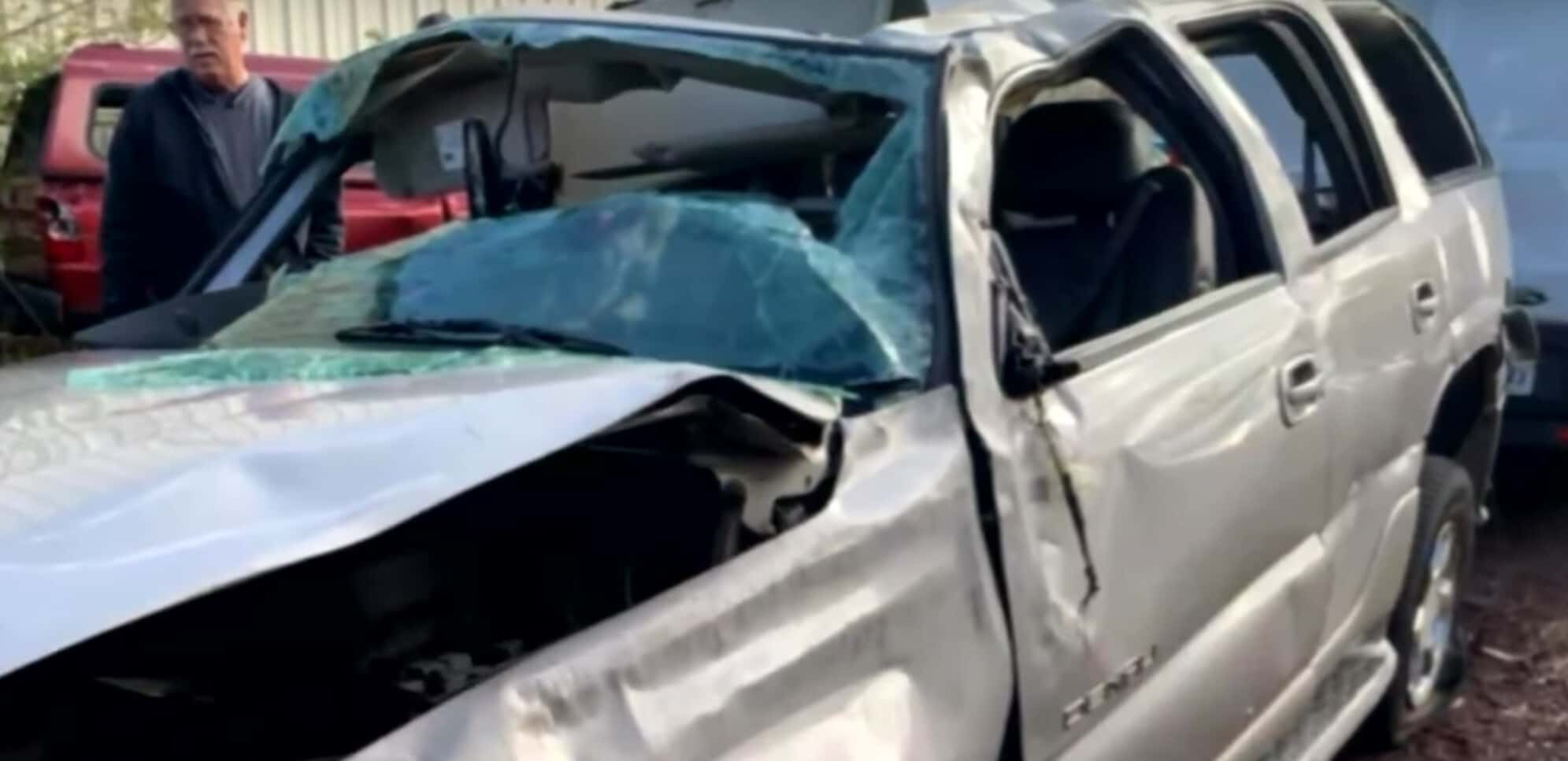“I do remember rolling, and I remember feeling my weight hit the seatbelt on my shoulder. And I remember sticking my hands up,” he explained. “As soon as the front of my car flipped out I hit a sign, and I rolled four times back onto the road.”