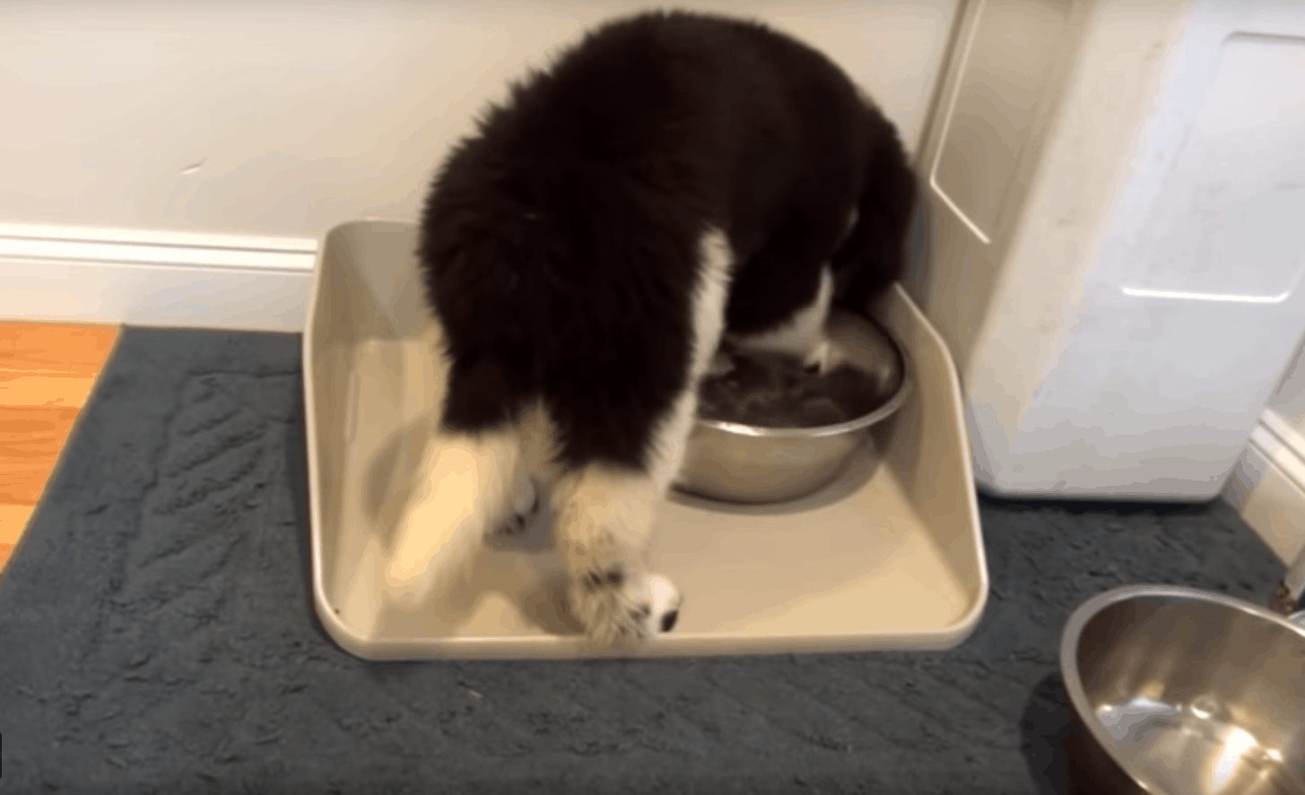 Watch as he discovers his new water bowl!