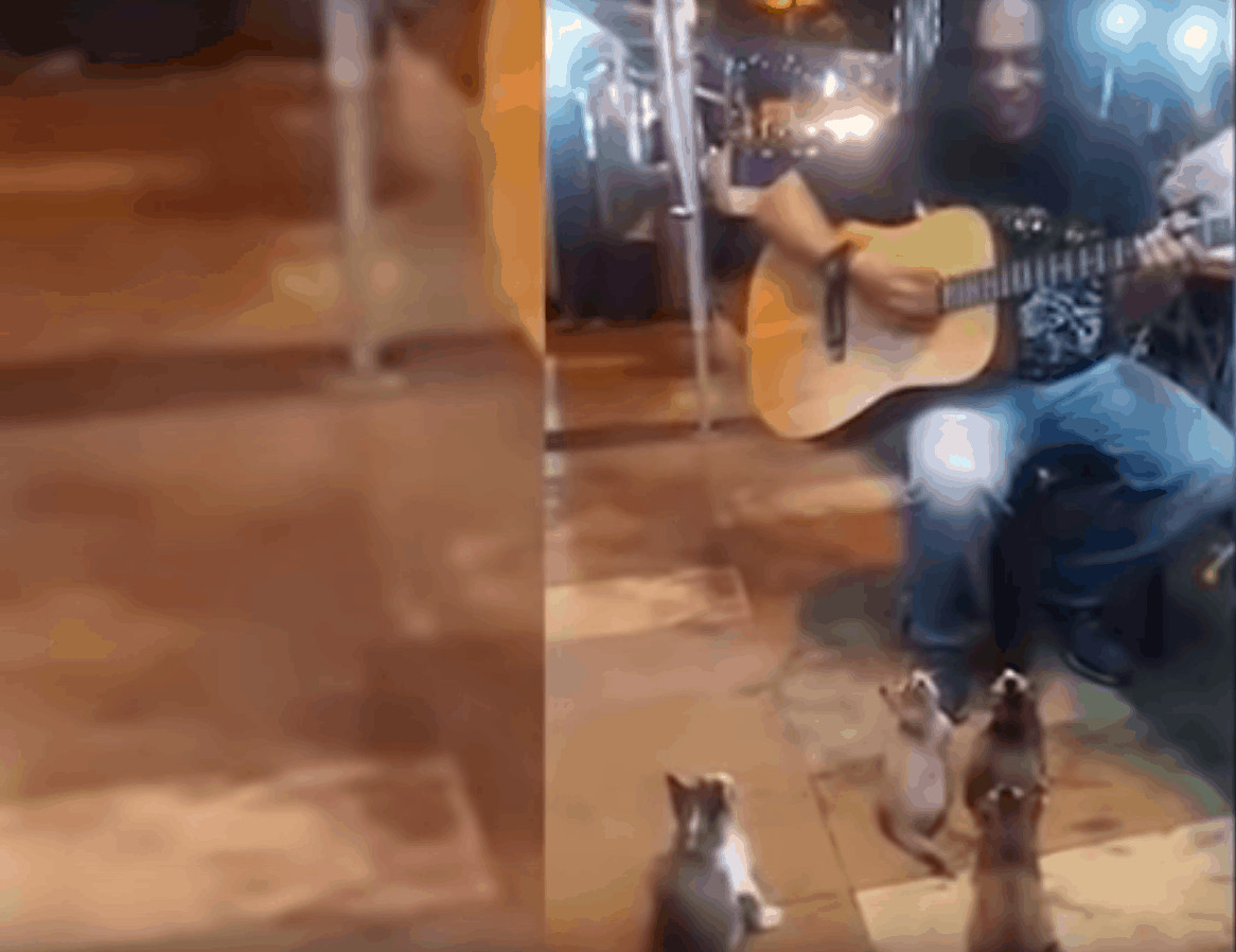 These kittens watch a busker perform and they are the sweetest audience ever!