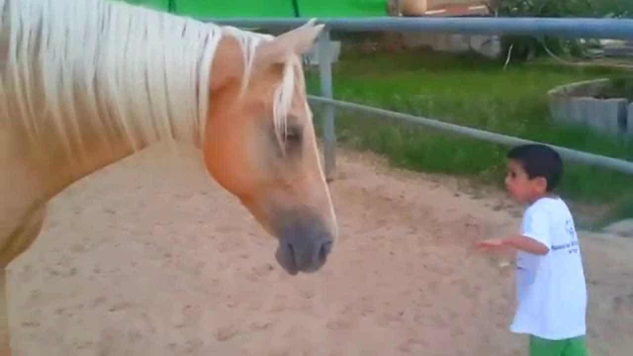 When this little boy with Williams syndrome, named Erez, meets a horse for the first time, he is uncharacteristically shy at first. Can you imagine if you were as small as he was and you were meeting an animal so big? But he soon warms up and snuggles up close to the gentle giant. Watching the pure joy on his face is entirely priceless.