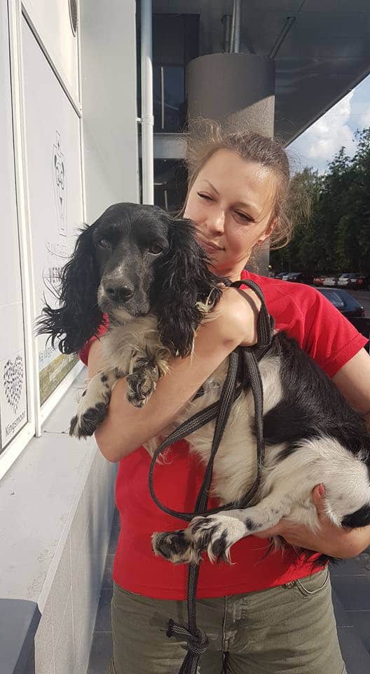 Audra Petraškienė was driving through her home country of Lithuania when she came across the poor pup. She found the scared dog near a river, with a box tied around its neck, evidently a makeshift anchor. “The dog was scared and shaking as well,” said Audra’s daughter Andra.