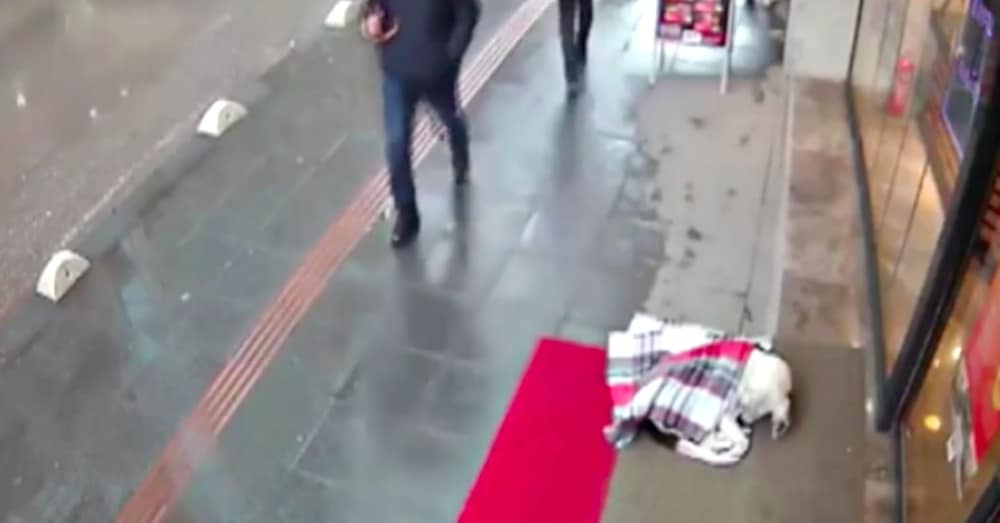 The dog was shivering and that is when Elma removed the scarf from around her neck and wrapped it around the dog. A security camera for the cafe captured the touching moment. Elma was not able to take the dog with her, but she told The Dodo, “The weather was so cold. I just couldn’t take it when I saw him shivering.”