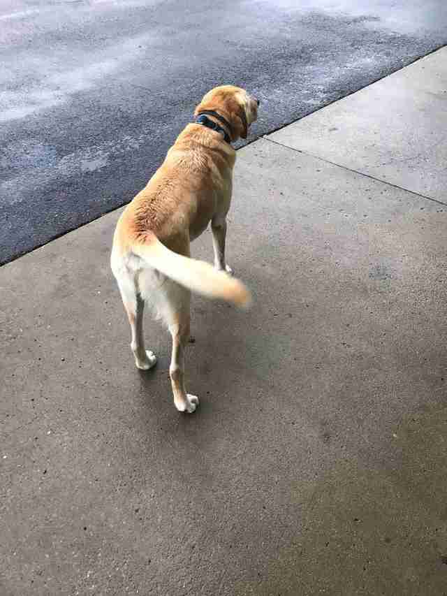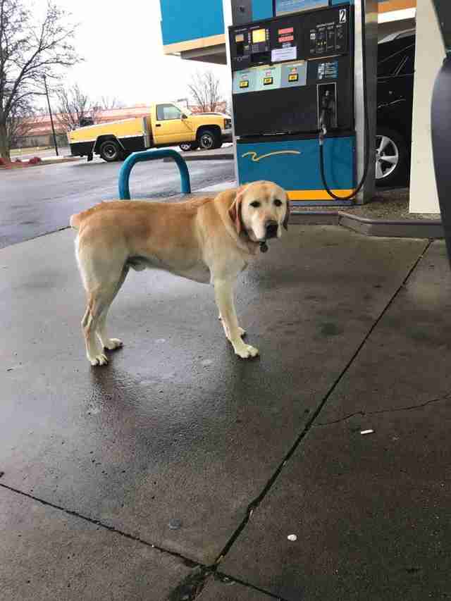 After stopping to refuel at a gas station near his home in Kentucky, Wilson was approached by an unaccompanied yellow lab. Naturally, it raised concerns that the dog might be in need of help – especially since Wilson had spotted him on his own before.