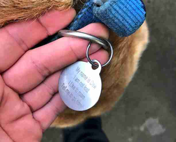 Instead of listing contact information of the dog’s owner, the tag simply read: